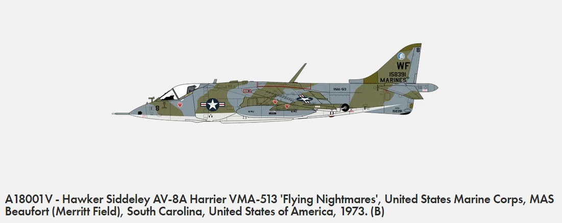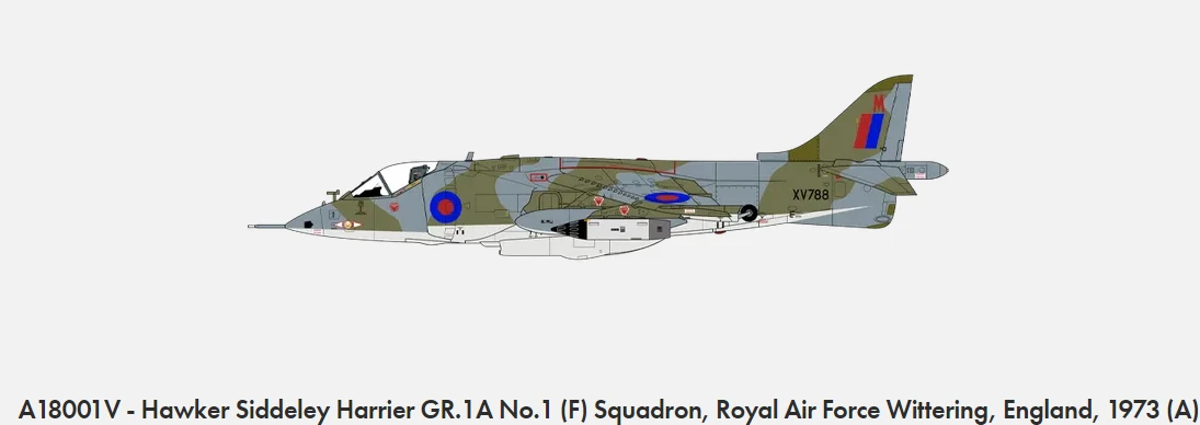 An aircraft which is undoubtedly one of the most significant in the history of aviation, the Hawker Siddeley Harrier GR.1 was developed from the Hawker P.1127 experimental aircraft produced to test the possibilities of V/STOL vectored thrust flight. These aircraft would successfully master the transition from hovering to forward flight and back to the hover, despite several of the development aircraft suffering accidents during testing. The prospect of a viable V/STOL aircraft proved to be of great interest to both the British and US military, who funded further development of the aircraft.The new ‘Jump Jet’ was an instant hit with the British public, who marvelled at the ingenuity of their aviation industry, which was once again proving to be the envy of the world. As the consummate display performer, the Harrier was always a popular display item with Airshow crowds, with the two forming a bond which would last right through the Harrier’s long service career. In the eyes of the British public, no Airshow was complete without a display from Britain’s world leading Harrier.Entering Royal Air Force service in April 1969, the operational flexibility offered by the Harrier GR.1 ensured the aircraft would never find itself too far away from potential conflict hotspots. Not confined to operating from military airfields, Harriers could be concealed in forest clearings or dispersed to sections of motorways, or even school playgrounds, but with the intention of keeping their location concealed from the enemy. With many of these early Harriers deployed in West Germany, they would act as a significant deterrent against Eastern Bloc aggression, potentially lurking in many undisclosed locations, poised to strike against attacking Soviet armour at a moment’s notice.
