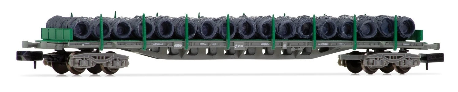 RENFE, 4-ax. Container car type Rgs, green-gray version, loaded with wire wheels, Ep. V