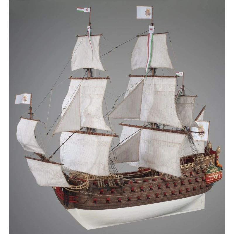 Nuestra Señora de la Concepción y de las Ánimas was the first Spanish three decker. Construction of the ship was begun in 1682 by the master builder Antonio de Amas and she was launched in 1687 at the Colindres shipyard in Cantabria. She had a displacement of about 1500 tons. There are two sources for reconstruction of the ship; first is the book “Arte de Fabrica Reales” from 1691 which contains some drawings, and second is a painting in the parish church “Iglesia de la Asunción” in Arcenillas, Zamora.