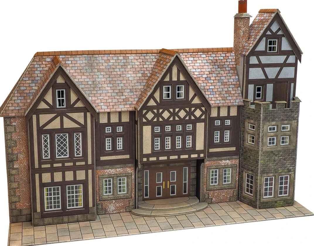 A low relief Tudor style quirky hotel.