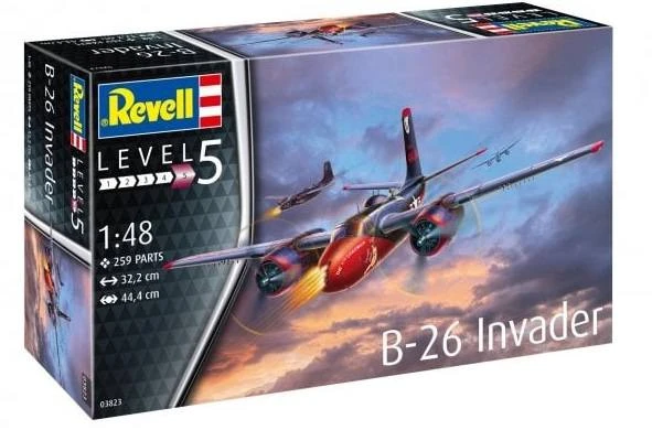 1:48 Scale model of a US Douglas B-26C Invader. This model is produced in grey plastic parts ready to be constructed.