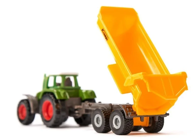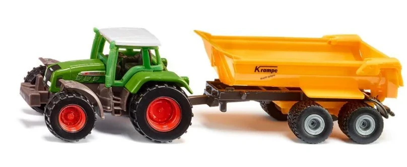 The tractor and Krampe tipper trailer create a power duo260 raw horsepower make the 926 Vario the superstar of the tractors. As a power duo with the Krampe tipper trailer, the tractor with the famous square bonnet easily masters all tasks out in the fields, and is therefore essential equipment for the daily routine on the (play) farm. As siku models, the tractor and trailer are manufactured from metal and plastic, and match the prototype down to the smallest detail. Free-running wheels allow the 926 Vario to travel effortlessly, even with a heavy load. The trailer with its tandem chassis takes just a moment to couple to the Vario’s trailer coupling – and then they’re off. The removable cab and tippable trough with a movable flap ensure even more playing fun.